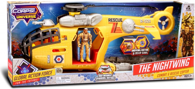De helikopter The Corps The Nightwing biedt kinderen veel plezier en spannende missies. Dankzij de indrukwekkende lengte van 50 cm en het meegeleverde figuurtje van 10 cm is hij ideaal om eigen actiescènes te creëren en de verbeelding te stimuleren.