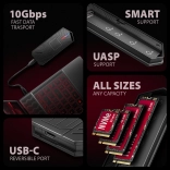 De compacte en duurzame AXAGON‑behuizing verandert uw M.2‑schijf in een snelle externe opslag met een USB‑C 10 Gb/s‑interface. Ondersteunt zowel NVMe als SATA SSD, biedt overdrachtsnelheden tot 10 Gb/s, functies UASP, TRIM en S.M.A.R.T.. Dankzij de schroefloze opening, RGB‑LED‑verlichting en de aluminium behuizing met efficiënte koeling is hij ideaal voor gaming‑sets en mobiel gebruik.