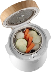 Rijst wordt automatisch bereid zonder toezicht – houd eenvoudig de verhouding 1 deel rijst : 1 deel water aan. Met de meegeleverde stoommand van roestvrij staal stoom je voorzichtig groenten, vis of dumplings en behoud je maximaal voedingsstoffen, vitaminen en mineralen. Het speciale programma voor huisgemaakte yoghurt laat je pure yoghurt zonder conserveermiddelen precies naar jouw smaak maken.