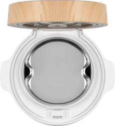- Elegant compact design – witte kleur met houten accent past perfect bij een moderne keuken.