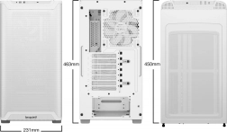 Uitzonderlijke ondersteuning voor ventilatoren en radiatoren voor waterkoeling biedt flexibiliteit en efficiënte koeling. Deze behuizing met afmetingen 231 x 463 x 450 mm weegt 7,2 kg en biedt uitgebreide mogelijkheden voor individuele configuratie en optimale koeling.