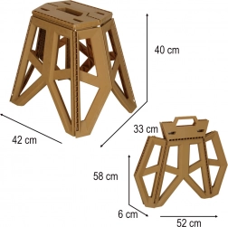 De compacte afmetingen van 33 × 42 × 40 cm besparen ruimte in de auto en thuis; de zitting van 29 × 20 cm is ontworpen voor comfortabel zitten. Het krukje is ideaal voor kamperen, vissen, picknicks en als hulpje in de tuin of in huis.