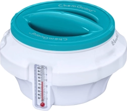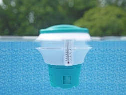 Drijvende chemiedispenser voor zwembadwater met thermometer