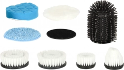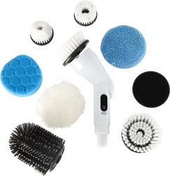 De verwisselbare koppen omvatten borstels, sponsjes en polijstpads voor diverse oppervlakken – tegels, voegen, badkuipen, spoelbakken, glas en kookplaten. De ingebouwde accu 3,7 V / 2000 mAh levert tot 30 minuten gebruik op één lading en is eenvoudig op te laden via een USB-kabel.