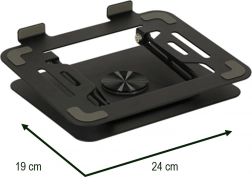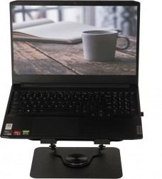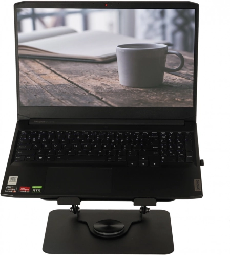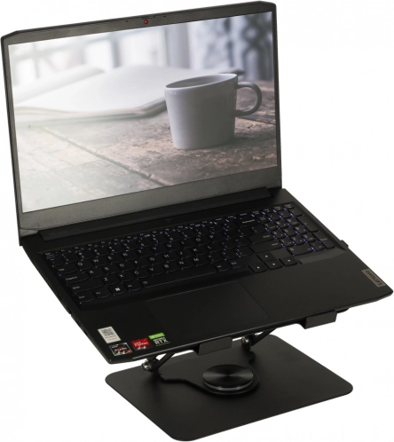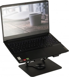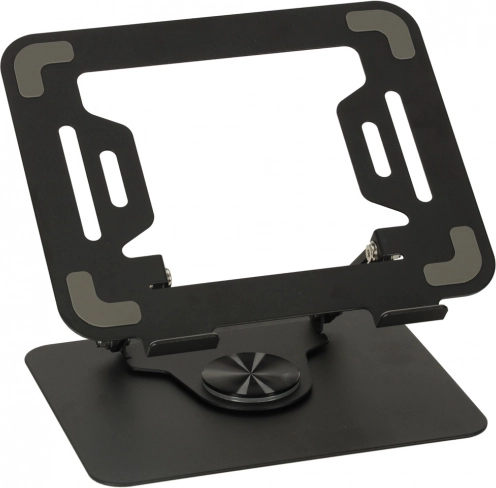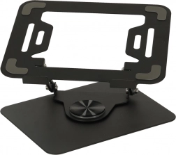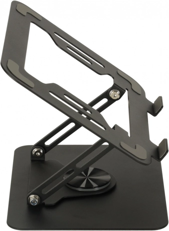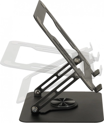 De standaard kan 360° worden gedraaid, wat flexibiliteit biedt bij het plaatsen van de laptop.