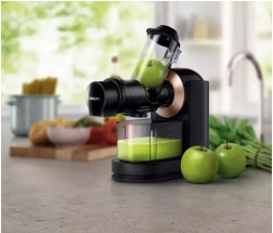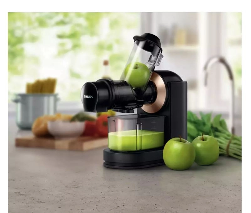 De Philips slowjuicer is ontworpen voor de dagelijkse bereiding van verse en smakelijke sappen. Hij is uitgerust met een brede vulopening van 70 mm, waarmee je gemakkelijk hele stukken fruit en groenten kunt persen zonder vooraf te snijden.