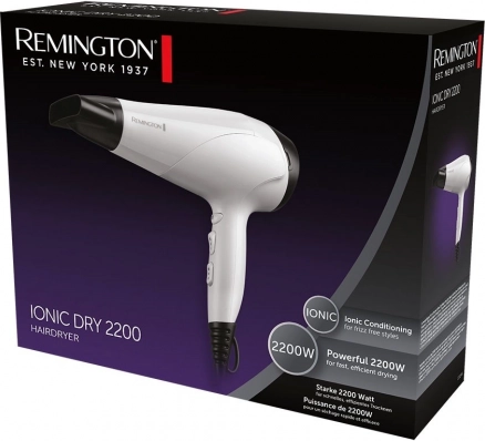 De Remington Ionic Dry 2200 is een betrouwbare hulp voor elke dag die eigenwijze lokken temt en zorgt voor een gladde finish zonder pluis. De ionische technologie geeft miljoenen negatieve ionen af die statische elektriciteit verminderen en het haar glanzend, soepel en handelbaar achterlaten.