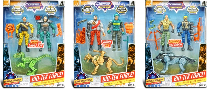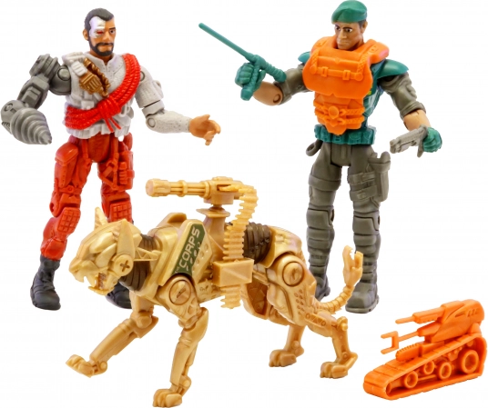 Deze unieke set van de reeks The Corps biedt drie verschillende combinaties met dieren: wolf, kat of dino. De soldaten zijn gedetailleerd afgewerkt en uitgerust met wapens voor perfect spel in actievolle gevechten. Elk dier heeft een specifiek uiterlijk en karakter die elk spel tot leven brengt.