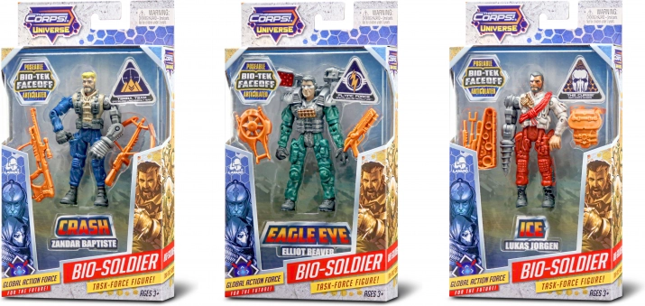 Ontdek een wereld vol actie met de Korpssoldaat met wapens. Dit figuurtje van 10 cm komt in drie verschillende varianten: Crash, EagleEye en Ice. Elke variant biedt een uniek ontwerp en eigen stijl, waardoor kinderen zich kunnen onderdompelen in verschillende avontuurlijke en strategische scènes.<70p>