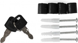 De verpakking bevat een montageset inclusief vier pluggen en afstandhouders, waardoor directe installatie mogelijk is na het uitpakken. De brievenbus bevat twee sleutels voor verhoogde veiligheid.