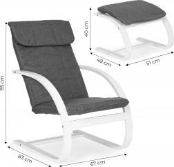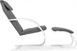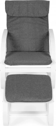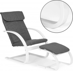 De stoel wordt geleverd met een comfortabele voetenbank, waarmee je je benen ontspannen kunt strekken en volledig tot rust komt. De speciale stof en zachte schuimvulling zorgen voor maximaal zitcomfort.