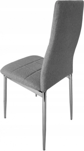 De stoelen passen perfect bij elke familietafel in de eetkamer en keuken. De grijze, gestoffeerde uitvoering van een aangename stof vult elk interieur prachtig aan.