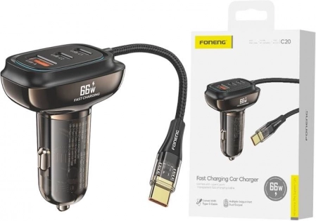 Autolader FONENG C20 66 W met 3 poorten (USB-A + 2× USB-C)