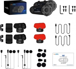 Rust jezelf uit met de Fodsports V6S en blijf in contact met andere motorrijders of familie zonder je focus op de weg te verliezen. Deze set bevat twee intercoms die kristalhelder geluid leveren dankzij geavanceerde CVC-ruisonderdrukking en een bereik tot 1000 meter.