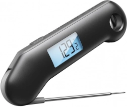 Het model F1 Turbo wordt ook gekenmerkt door extra functies die het gebruik ervan comfortabeler maken. De thermometer is waterdicht volgens de IP67-norm, waardoor het apparaat gemakkelijk te reinigen is. Het verlichte LCD-scherm vergemakkelijkt bovendien het aflezen van de temperatuur zelfs bij weinig licht. Dankzij de draaifunctie van 180° biedt de thermometer comfortabel meten, ongeacht hoe u de F1 Turbo vasthoudt, wat het nog comfortabeler maakt.