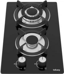 Het IsEasy twee-zone gasfornuis is uitgerust met twee branders, die optimale prestaties leveren voor elk kookproces. De grote brander met een vermogen van 3.300 W is geschikt voor snel koken of bakken, terwijl de kleinere brander met een vermogen van 1.000 W het mogelijk maakt om voedsel te stoven of op te warmen.