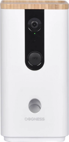 De Dogness T03 is uitgerust met een traktatie-uitdeelmechanisme, waarmee je je huisdier op afstand kunt verblijden. Met de smartphone-app kun je je huisdier bezig en actief houden, zelfs wanneer je niet thuis bent. De dispenser biedt plaats aan 0,18 kg droogvoer, voldoende voor veel beloningen.