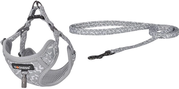 De Dogness uitlaatsset combineert stijl, comfort en veiligheid in één praktische verpakking. Het lichte, ademende harnas is eenvoudig aan te trekken en past perfect dankzij de verstelbare banden. De 1,5 m lange lijn biedt uitstekende controle over de hond zonder zijn beweging te beperken.