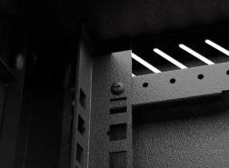 De kast is gemaakt van hoogwaardige gewalste staalplaat, wat een stevige constructie en betrouwbaarheid garandeert, en maakt stabiele plaatsing van diverse apparaten mogelijk dankzij extra montageprofielen.
