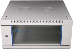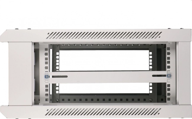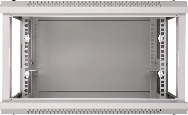 Compacte wandgemonteerde 4U rackkast met afmetingen 600 × 600 mm, ideaal voor kantoren, serverruimtes en CCTV-installaties. De duurzame stalen constructie zorgt voor stabiliteit, de vergrendelbare gehard glazen deur beschermt de apparatuur en gemarkeerde verticale rails maken de montage eenvoudig. Het bovenpaneel is voorbereid voor ventilatoren en heeft een praktische kabeldoorvoer.