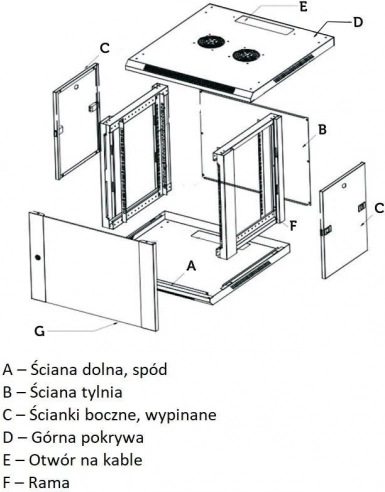 Montage en onderhoud worden versneld door duidelijk gemarkeerde 4U-rails en gemakkelijk afneembare zijpanelen met sloten in de verpakking. Het bovenpaneel is voorbereid voor de installatie van twee ventilatoren voor efficiënte koeling en bevat een kabeldoorvoer voor nette kabelgeleiding.