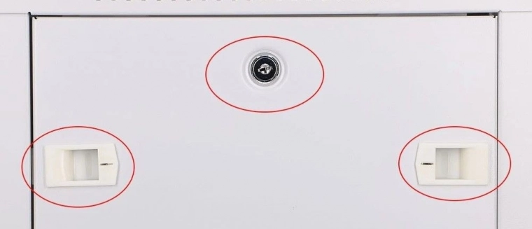 De kast is gemaakt van koudgewalst staalplaat en heeft een afsluitbare voordeur van gehard glas ter bescherming van de apparatuur.