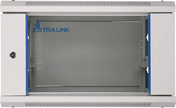 Deze wandgemonteerde 4U rackkast combineert een robuuste constructie van koudgewalst staalplaat met een elegante glazen voordeur van gehard glas. De deur is omkeerbaar voor links- of rechtsdraaiende opening, zodat je de openingsrichting eenvoudig aanpast aan de ruimte.