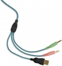 De gevlochten kabel raakt minder snel in de knoop en dankzij USB- en 3,5mm-aansluitingen sluit je zowel audio als microfoon eenvoudig aan.