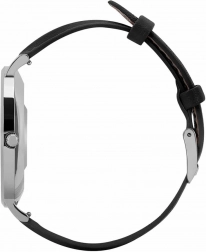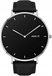 - Ultradun en licht; zilverkleurige behuizing, zwarte leren band