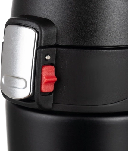 Flipdeksel met slot en rubberen afdichting garandeert 100% dichtheid, ook wanneer hij omvalt. Ideaal voor in de tas en in de auto.