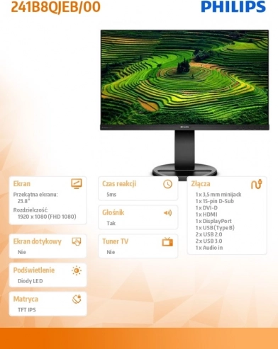 Ontdek een nieuw perspectief met de 23,8" Philips-monitor met Pivot-functie, uitgerust met een IPS-paneel voor uitzonderlijke kleurnauwkeurigheid en brede kijkhoeken.