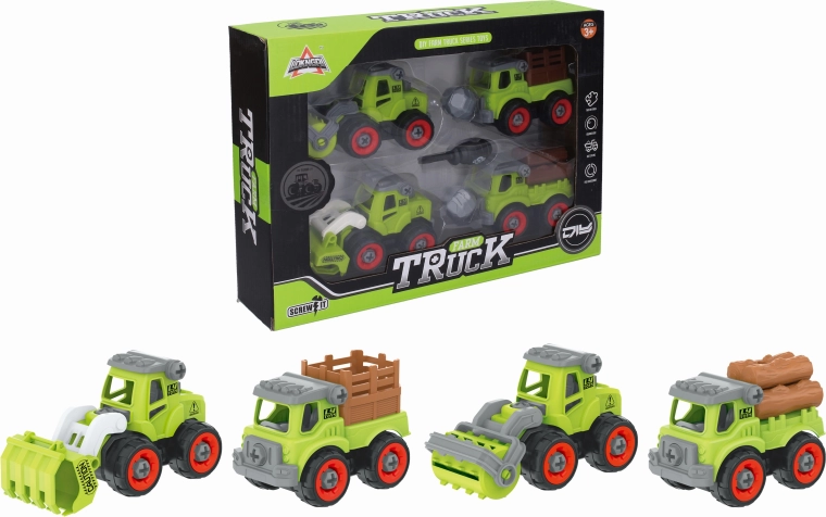 Stap de wereld van de landbouw binnen met deze leuke set voertuigen voor kinderen. Ideaal voor kids die graag speelgoed in elkaar zetten en uit elkaar halen; deze set biedt geweldige mogelijkheden om de fijne motoriek en het logisch denken te ontwikkelen.