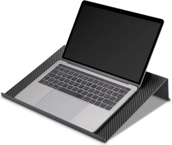 Gun jezelf een opgeruimde en ergonomische werkplek. Deze laptopstandaard in een elegante carbonlook past perfect in zowel het thuiskantoor als in een zakelijke omgeving. Antislip rubberen pads houden het apparaat stevig op zijn plaats en beschermen tegelijkertijd het bureaublad tegen krassen.