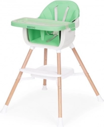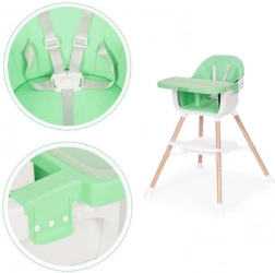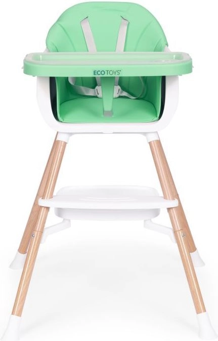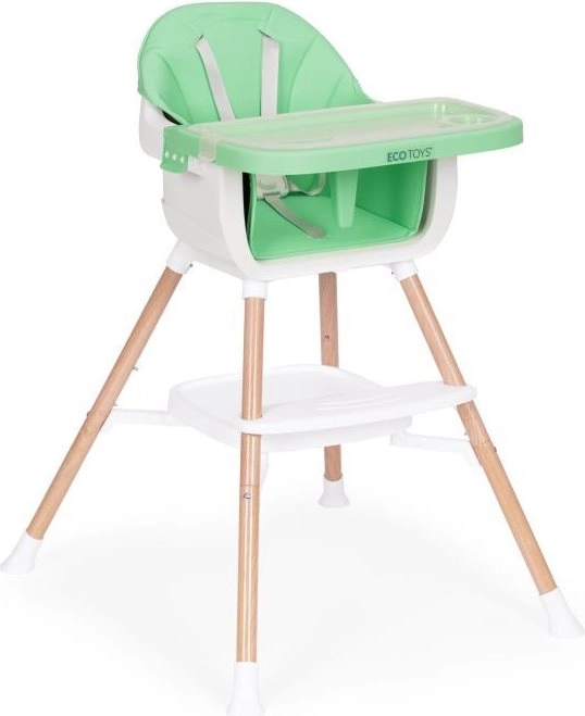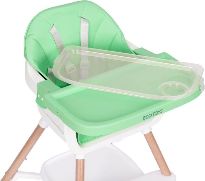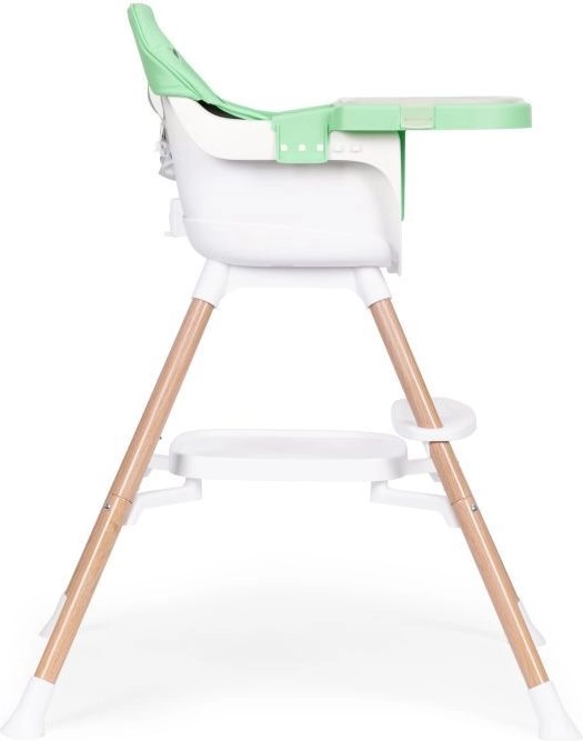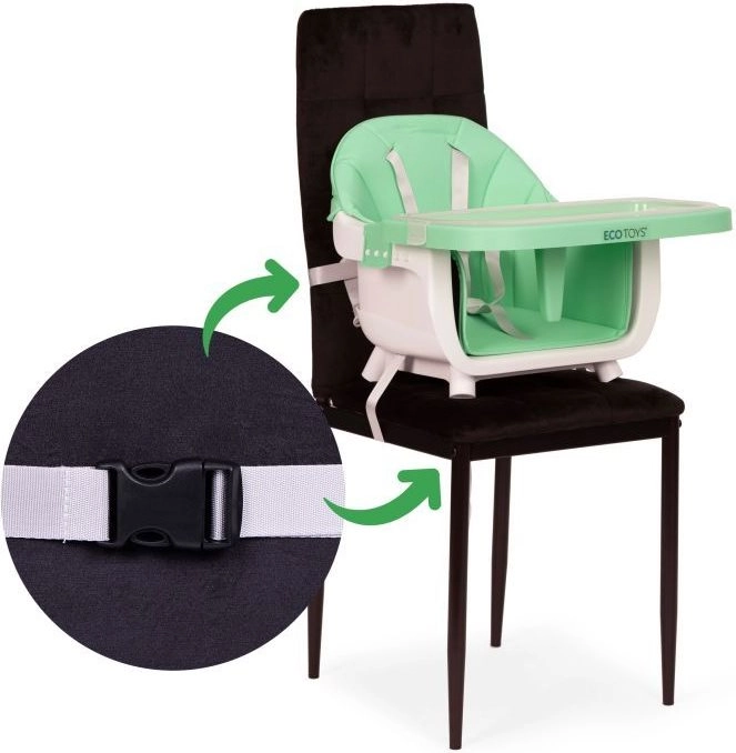 Je kind zit veilig dankzij de 5-punts gordel en antislipbescherming. Metalen poten met brede spreiding en antislipvoetjes zorgen voor stabiliteit, terwijl de zachte, onderhoudsvriendelijke bekleding van eco-leer en de afneembare hoes het onderhoud eenvoudig maken. Het praktische opbergschap onder de zitting biedt plaats aan slabbetjes of doekjes.
