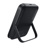 Twee functies in één: U kunt uw apparaten gelijktijdig opladen met de powerbank, wat de noodzaak van extra kabels vermindert. Draadloos opladen voorkomt gedoe met in de knoop geraakte kabels. Het opvouwbare magnetische ontwerp maakt het mogelijk om het apparaat veilig op een tafel of nachtkastje te plaatsen. Ideaal voor het kijken van video’s of videogesprekken tijdens het opladen.