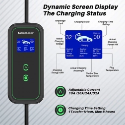 De ingebouwde functie voor uitgestelde laadstart maakt het mogelijk om te laden tijdens voordeligere tarieven. Het 2,4" LCD-scherm biedt inzicht in de laadstatus, tijd en apparaattemperatuur, terwijl veiligheidssensoren het apparaat beschermen.