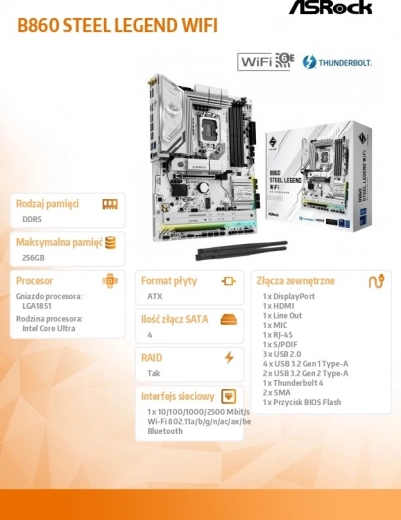 B860 Steel Legend WiFi is ontworpen met oog voor degelijkheid en esthetische aantrekkingskracht. Dit moederbord is bedoeld voor zowel gewone gebruikers als enthousiastelingen. Het biedt stabiele en betrouwbare prestaties dankzij hoogwaardige materialen en componenten.