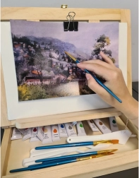 De koffer is gemaakt van duurzaam hout en is voorzien van een ezel voor comfortabel schilderen. Alle tools en accessoires zijn zo georganiseerd dat ze gemakkelijk toegankelijk zijn en goed beschermd tijdens het vervoer.