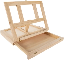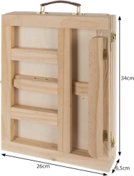 De houten koffer is voorzien van een lade en een ezel, wat zorgt voor eenvoudig transport en organisatie van je kunstbenodigdheden.