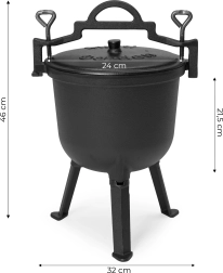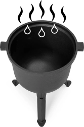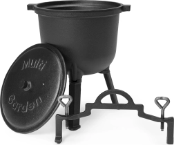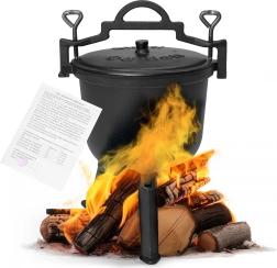 Deze robuuste en duurzame gietijzeren pot met een inhoud van 8 liter is een uitstekende keuze voor het bereiden van aromatische gerechten buiten of in huis. Het biedt een uitzonderlijke smaak en culinaire ervaringen en voegt een unieke sfeer toe aan buitenactiviteiten. Gietijzeren potten geleiden warmte gelijkmatig, wat ze ideaal maakt voor langzaam koken, stoven en braden.