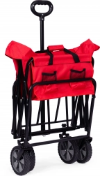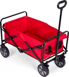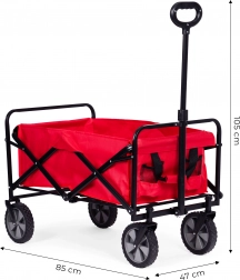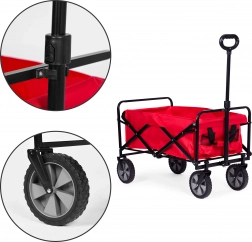 Deze kar is ideaal voor het vergemakkelijken van tuinwerkzaamheden of boodschappen, en zijn functionaliteit wordt gewaardeerd door strandliefhebbers.