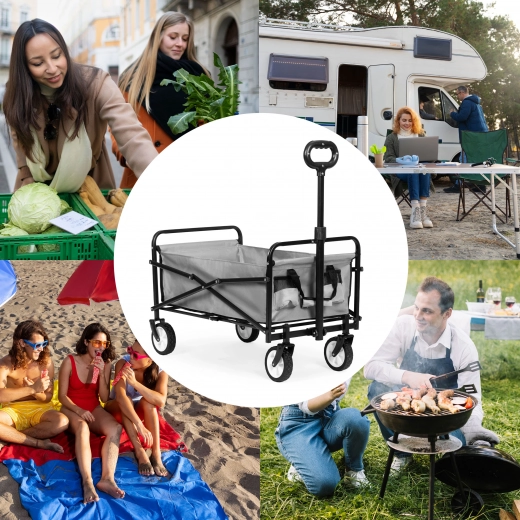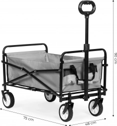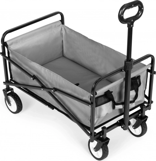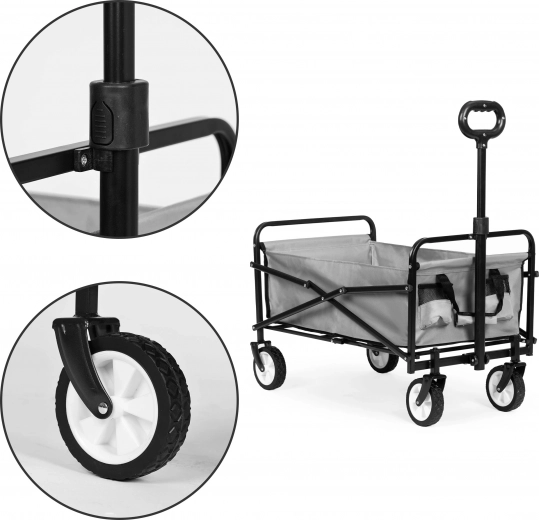 Deze handige kar vereenvoudigt uw werk in de tuin en het vervoeren van boodschappen. Zijn functies zullen ook strandliefhebbers waarderen. Comfortabele handgreep, opvouwbaar ontwerp en stevig metalen frame maken deze kar een onmisbare hulp.