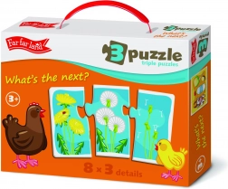 Ontdek de magie van Far Far Land puzzel trio, die kinderen niet alleen speelplezier biedt, maar ook de ontwikkeling van logisch denken en herkenningsvaardigheden stimuleert. Deze verpakking bevat in totaal 8 afbeeldingen, elk bestaande uit drie stukjes: