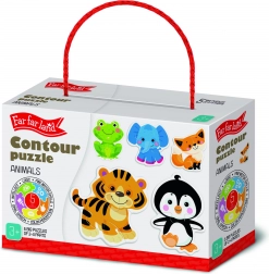 Far Far Land Puzzel dieren contouren is een set met 5 leuke puzzelafbeeldingen, ontworpen voor kinderen vanaf 3 jaar. Met levendige kleuren en een uniek design biedt het meer dan een gewone puzzel.