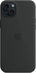 Deze elegante zwarte hoes met MagSafe-technologie is ontworpen voor perfecte compatibiliteit met de iPhone 15 Plus. Hij biedt een glad, zacht oppervlak voor een zekere grip en een zachte interne microvezelvoering die helpt krassen te voorkomen. Precieze uitsparingen en klikbare knoppen garanderen volledige functionaliteit en comfortabele bediening.