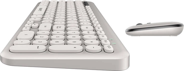 Het toetsenbord in de set kenmerkt zich door een ergonomisch design en een moderne uitstraling. Met multimediatoetsen kun je eenvoudig het volume beheren of snel apps starten. De toetsen zijn stil en hebben een levensduur tot 10 miljoen aanslagen.