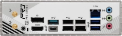 Topklasse draadloze connectiviteit 802.11ax (6E) met Bluetooth, snel bedraad netwerk via 2.5G en een brede selectie USB, HDMI en DisplayPort op het achterpaneel.