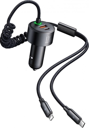 Krachtige Macdodo autolader met een totaalvermogen tot 120 W, biedt snelladen van twee apparaten tegelijk dankzij de geïntegreerde USB‑C- en Lightning-kabels. Praktische inschuifbare kabels houden de auto opgeruimd, terwijl slimme elektronica zorgt voor veilig opladen zonder oververhitting of overspanning.