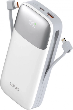 De LDNIO powerbank met 20.000 mAh zorgt voor voldoende energie voor je apparaten, waar je ook bent. Dankzij de twee ingebouwde kabels – USB‑C en Lightning – hoef je je geen zorgen te maken over vergeten kabels. Bovendien beschikt hij over een LED‑display dat je informeert over de laadstatus.