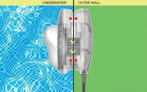 Het binnendeel wordt draadloos gevoed door de zwembadwand heen. Geen direct contact van elektriciteit met water – maximale veiligheid tijdens het zwemmen.